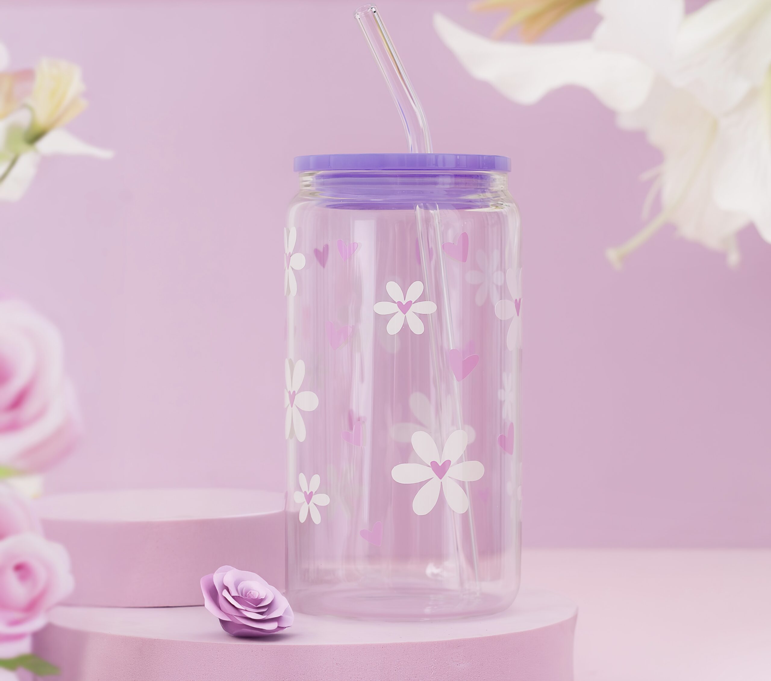 كوب زجاج بغطاء أكريليك وعود زجاج