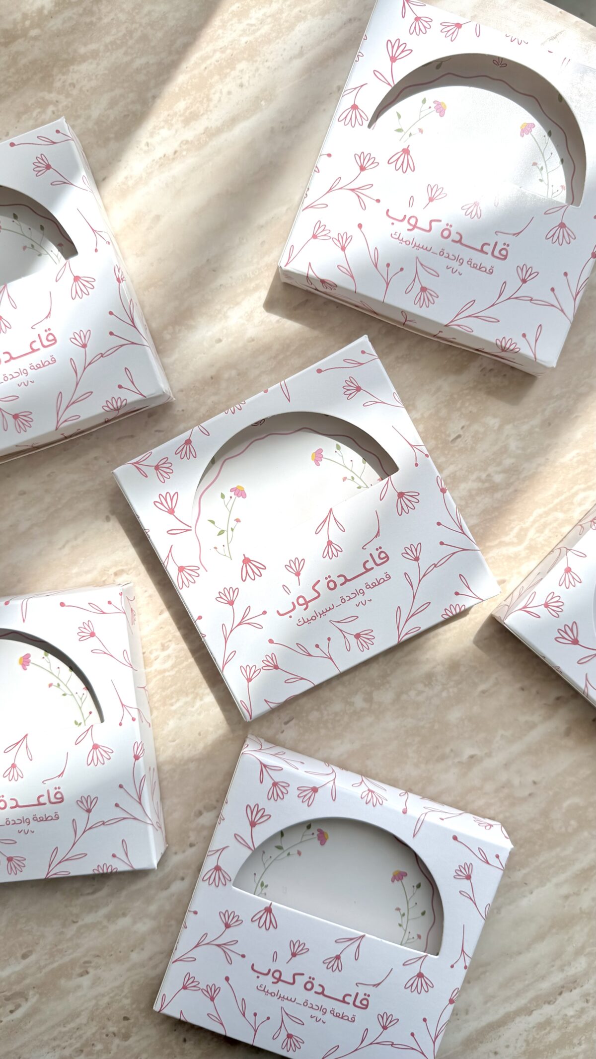 هدية تحتوي على تعليقة سيارة مع قاعدة كوب سيراميك