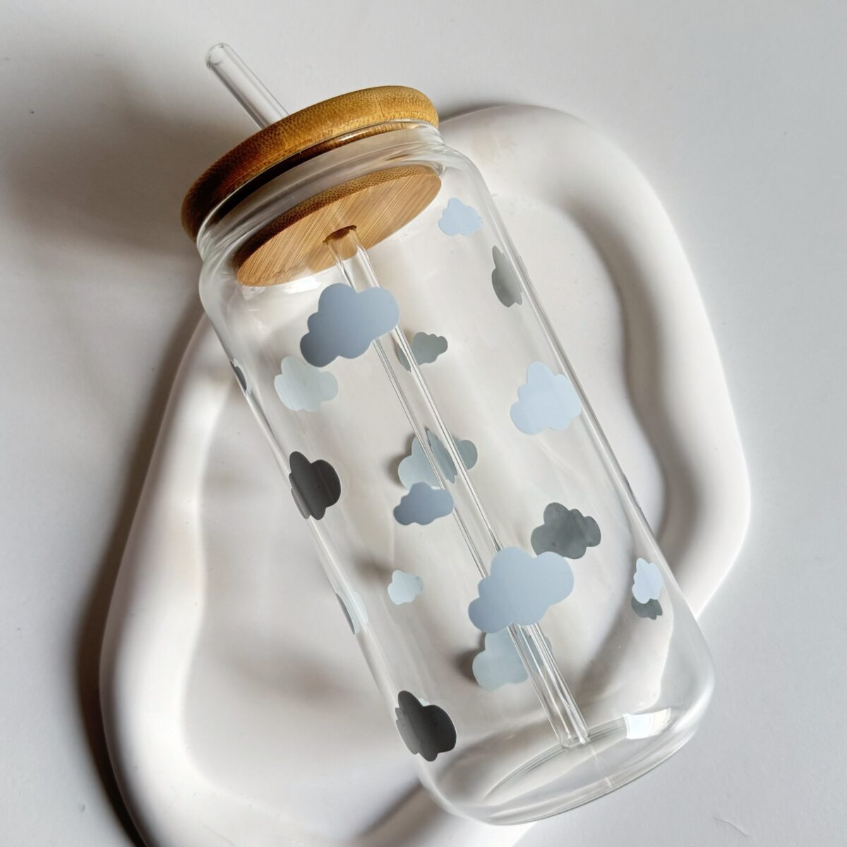 كوب الغيوم مع غطاء بامبو وعود زجاج